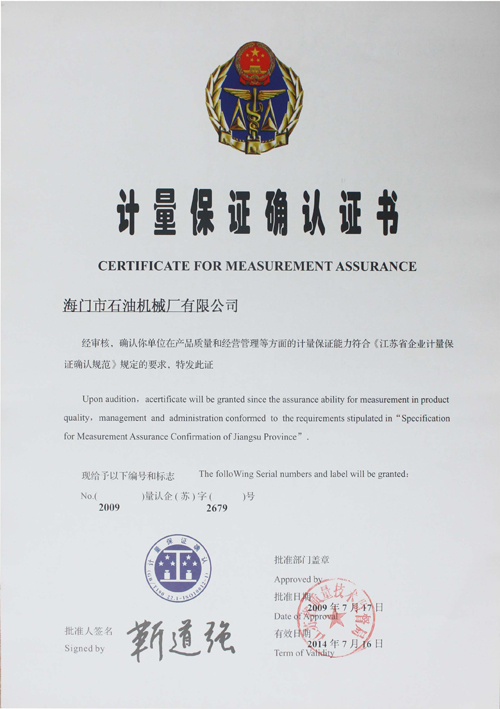 計量保證確認證書
